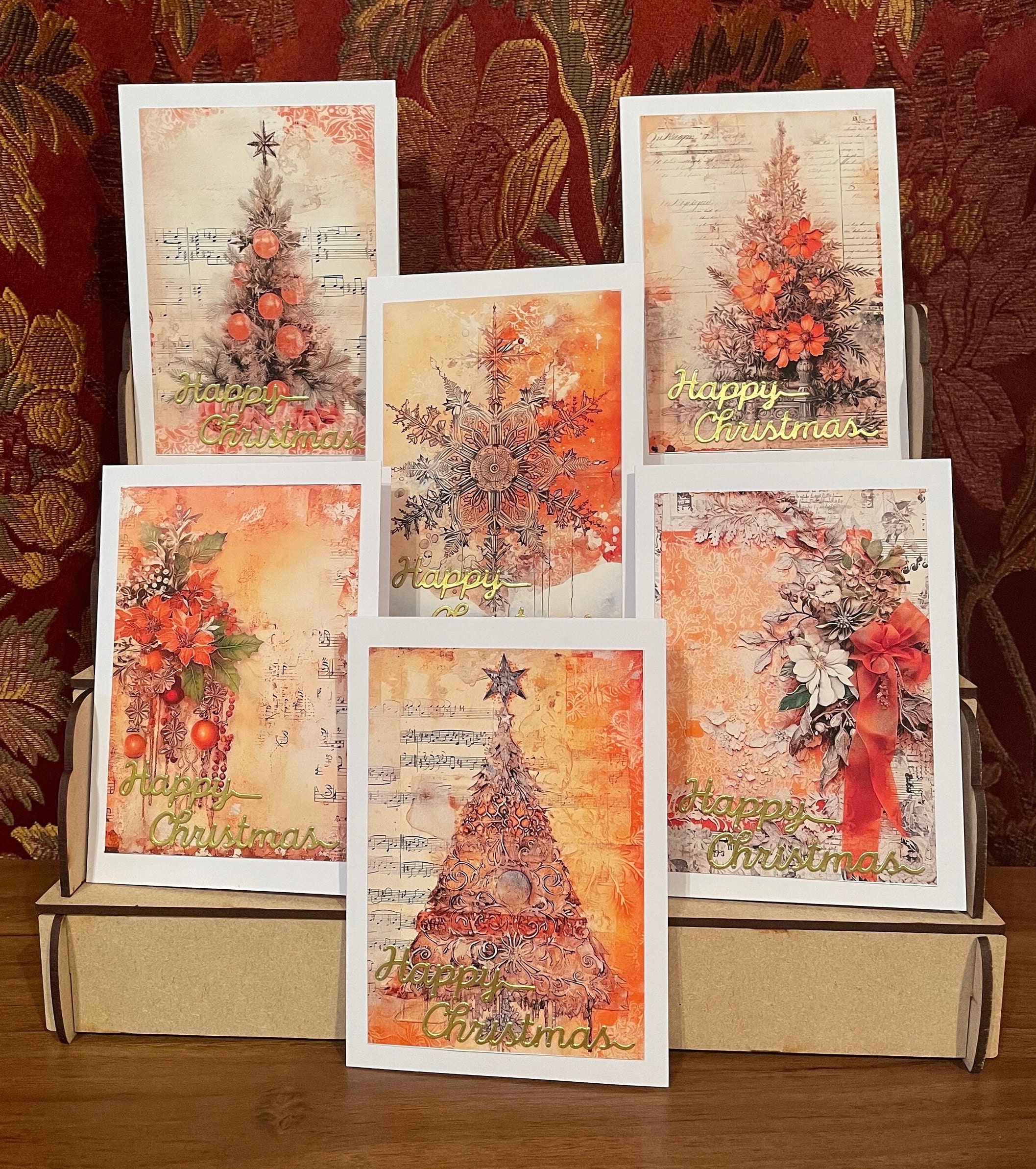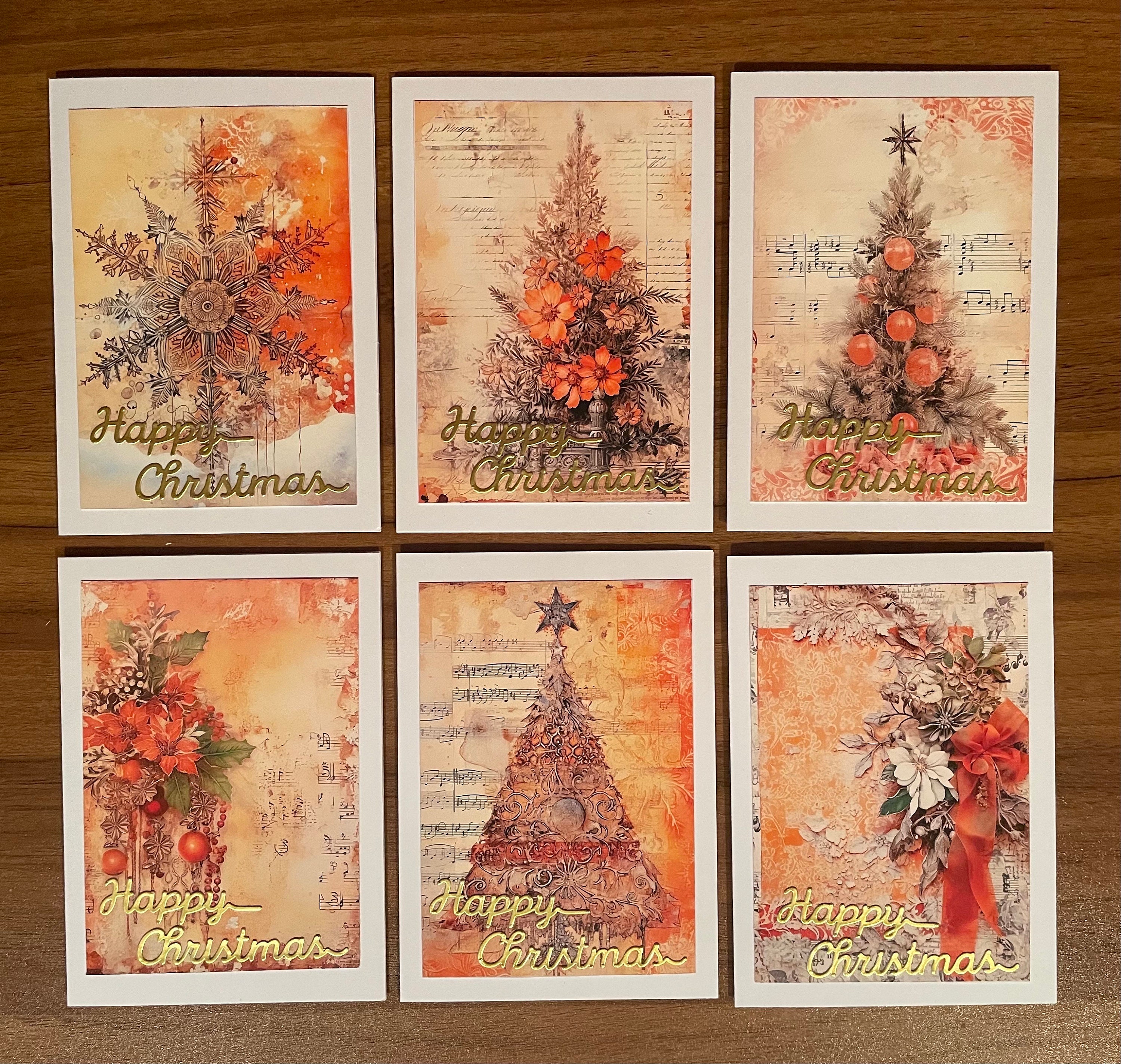 Pack of 6 Different Handmade Christmas Cards with christmas trees.